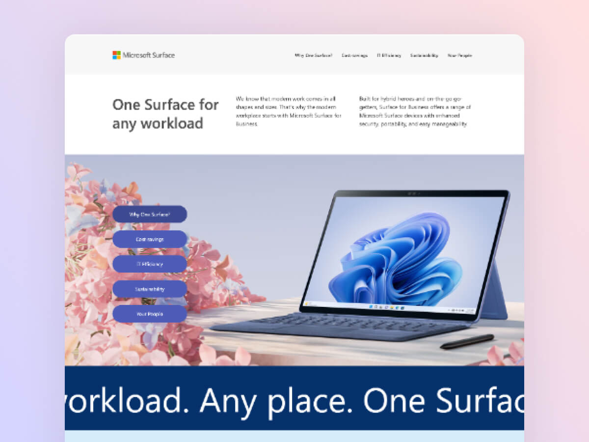One of the biggest and most creative projects was the launch of our bespoke Microsoft Surface microsite. The end-result was unique. It was informative, and provided prospective leads with in-depth content that featured playful and engaging elements.